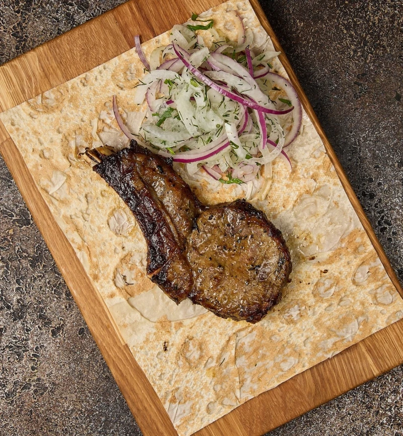 телятина,лаваш, лук/зелень. Вес продукции указан в сыром виде.